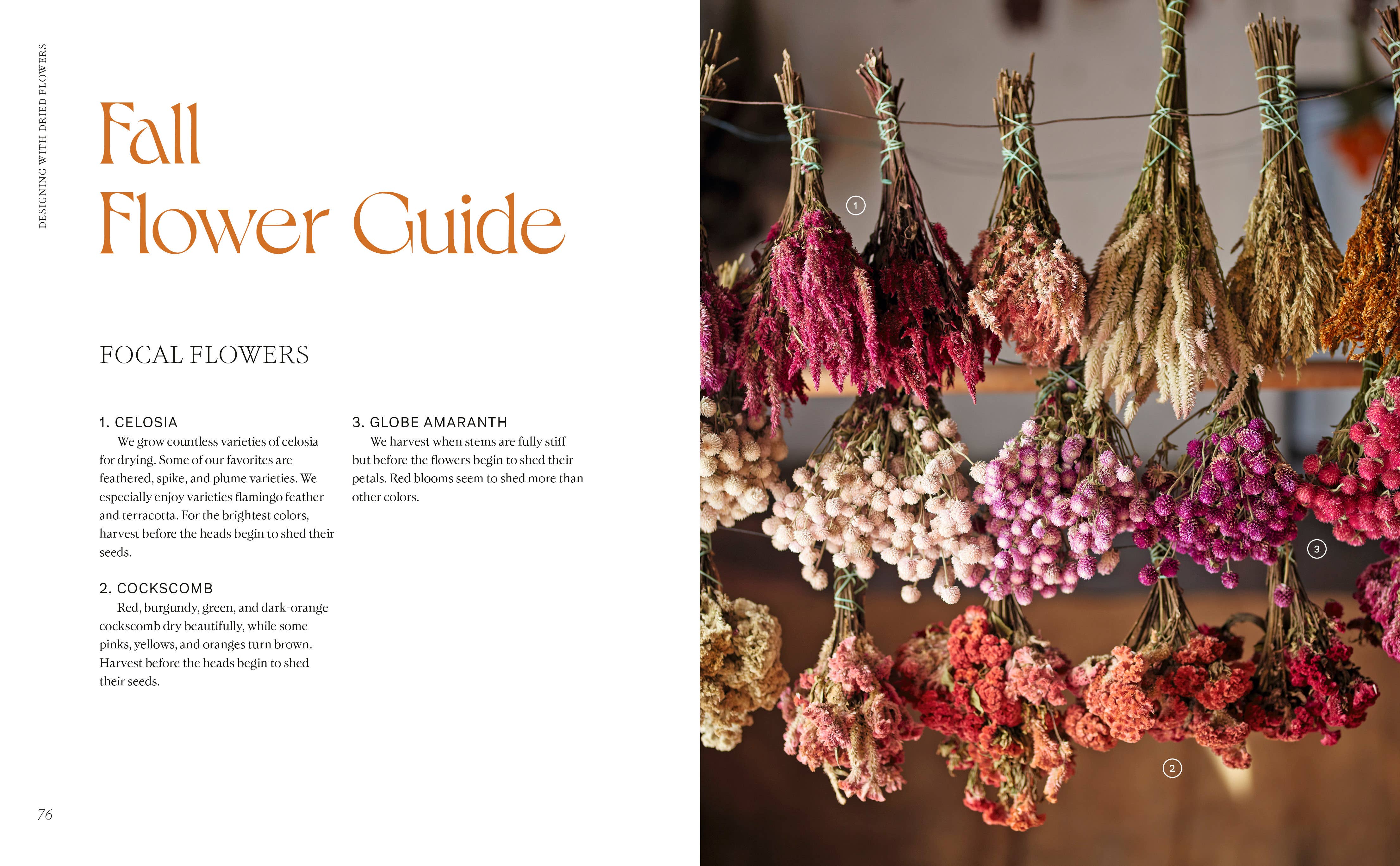 The beauty of flowers is often fleetingly lovely, but a dried bouquet is a gift that can last for years. In Designing with Dried Flowers, farmer-florist Hannah Muller of The Wreath Room at Full Belly Farm shares her everlasting floral arrangements that are full of color and texture. Bursting with images of her stunning creations, from small vases and centerpieces to wreaths and wall hangings, Designing with Dried Flowers is for anyone looking to learn the art of dried flower arranging. Hannah walks readers through the process of growing and drying flowers as she does at Full Belly Farm, with plenty of tips and suggestions, whether you’re an avid gardener or just picking up blooms at the supermarket. Dried arrangements are a natural and sustainable way to add beauty to your home, and Designing with Dried Flowers offers more than thirty floral designs for every occasion. Hannah shares her suggestions of what flowers to use and how to dry them.
