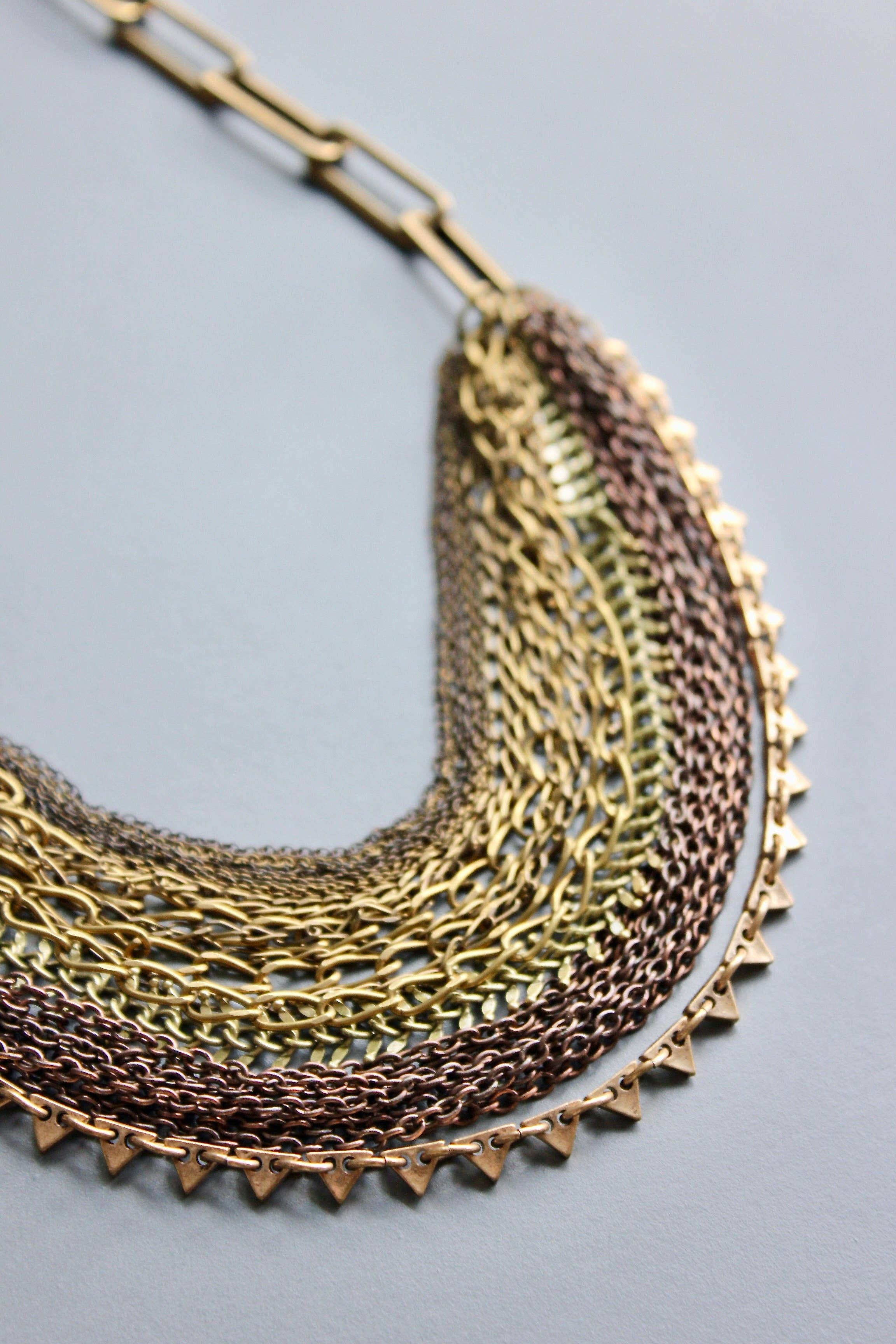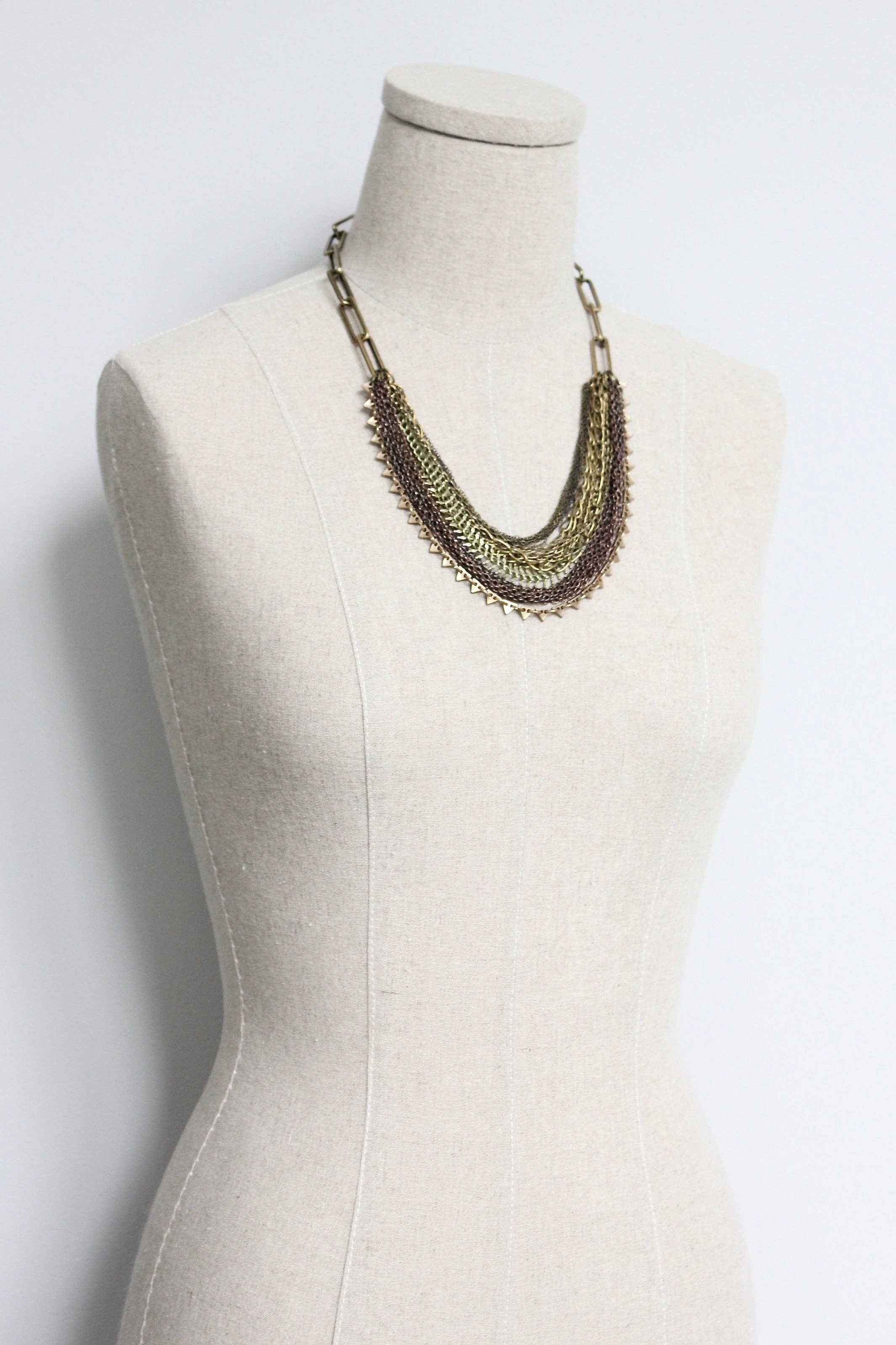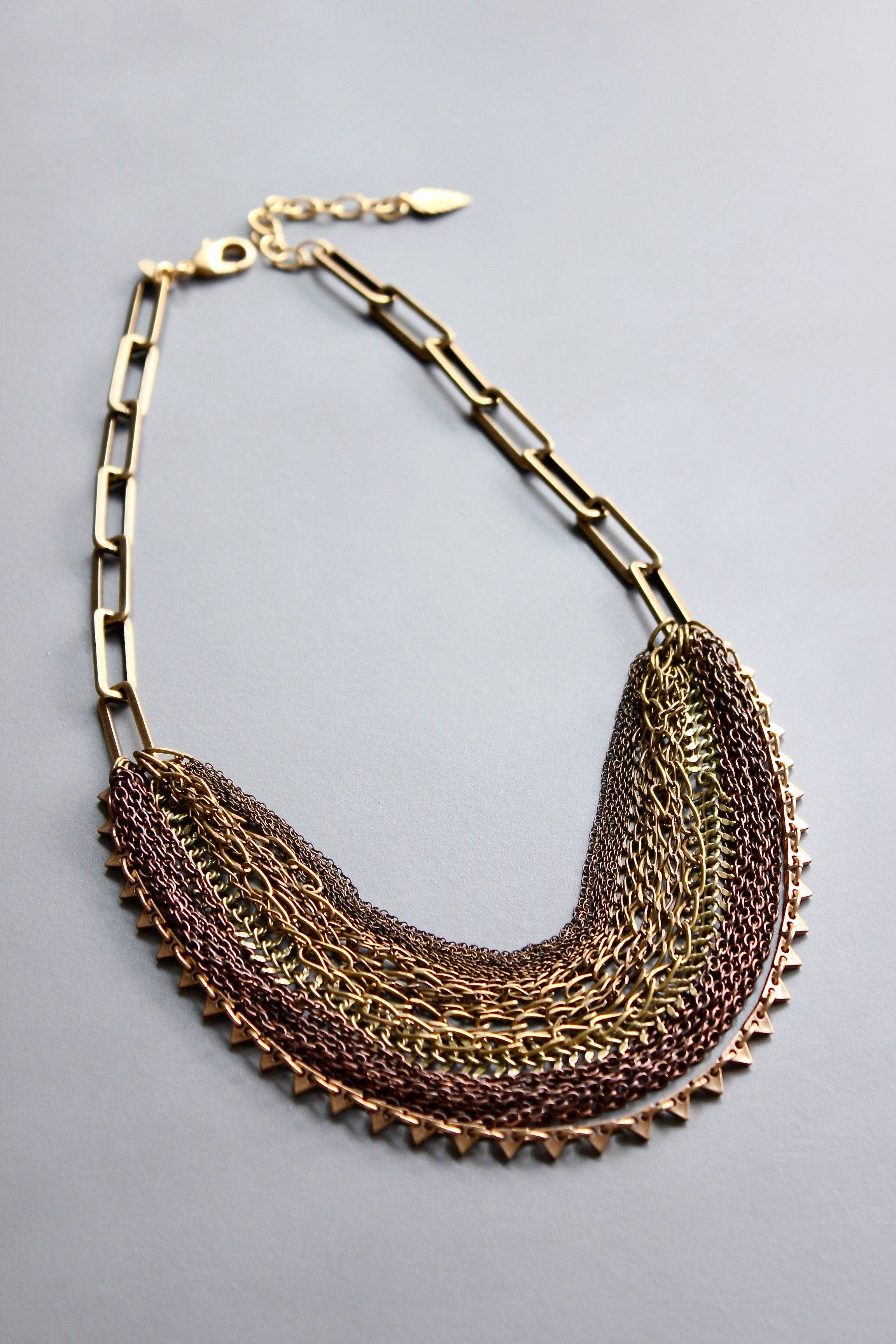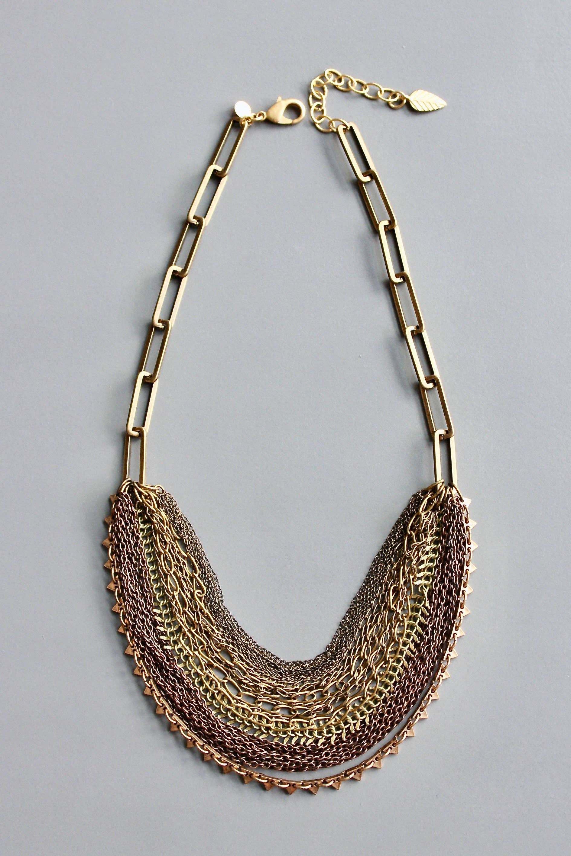 21" necklace with oxidized brass chain strands. 3 inch extender.
