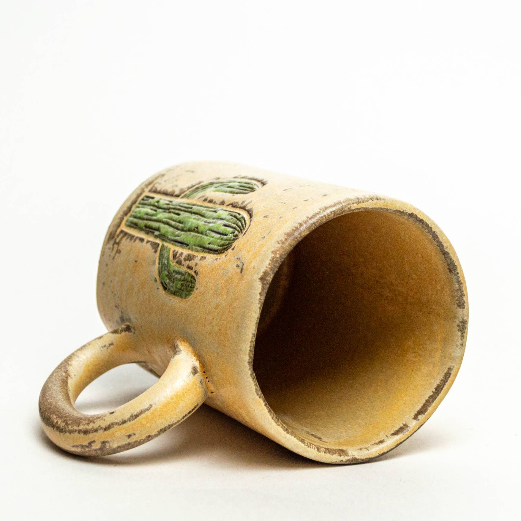 This beautiful handmade in Ohio, stoneware ceramic Saguaro Cactus mug is made of chocolate-colored clay.