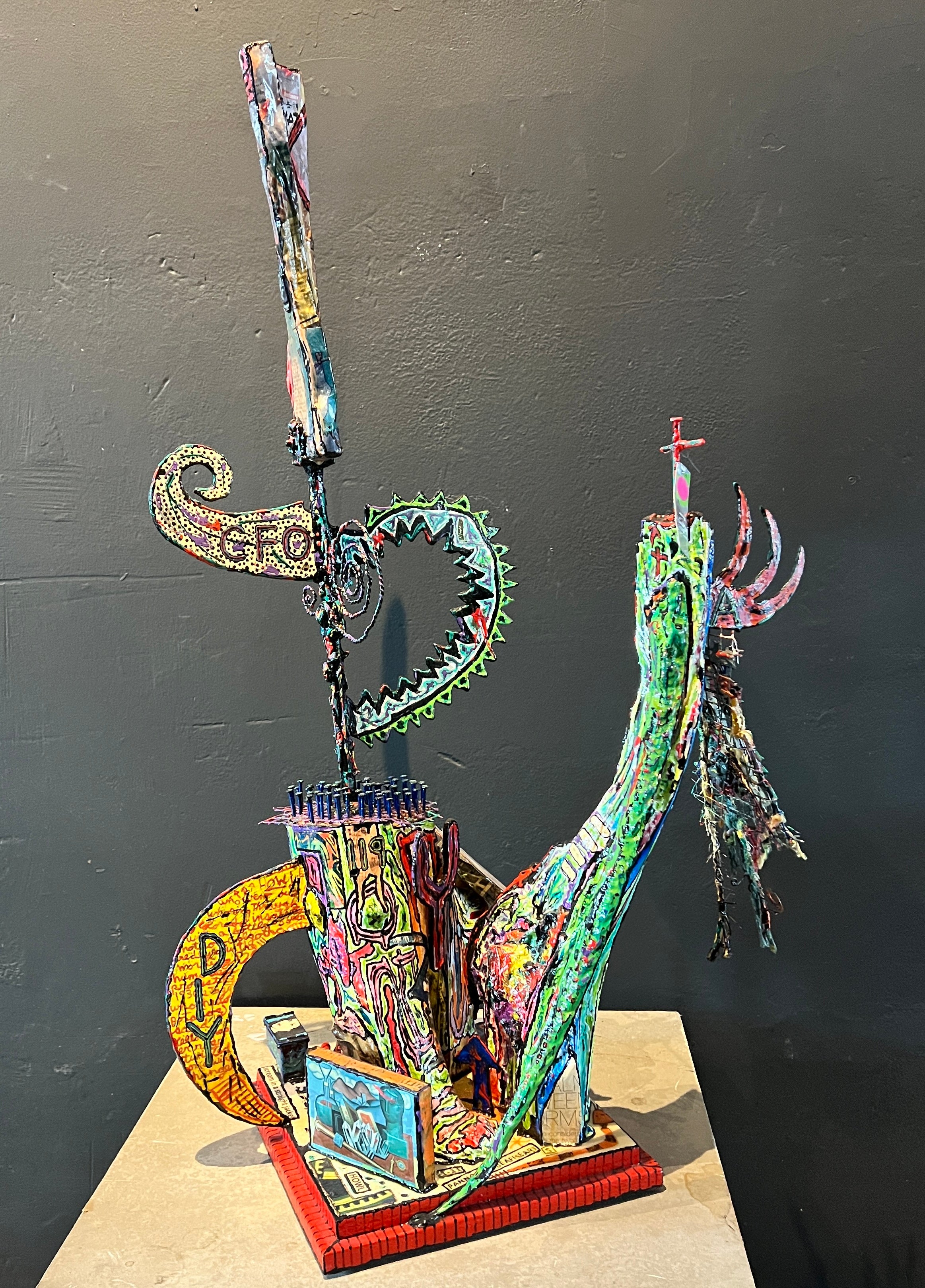 Recon: self defined as "Reconsideration(s) and reconnaissance (and/or "reconning") - I.E. reconsider, reconstruct, recreate, and recon...on Feb 16, 2018, the artist commenced the reconsideration of earlier sculptures. With the passage of time, he was/is not happy with them. In turn, created changed pieces you see today.