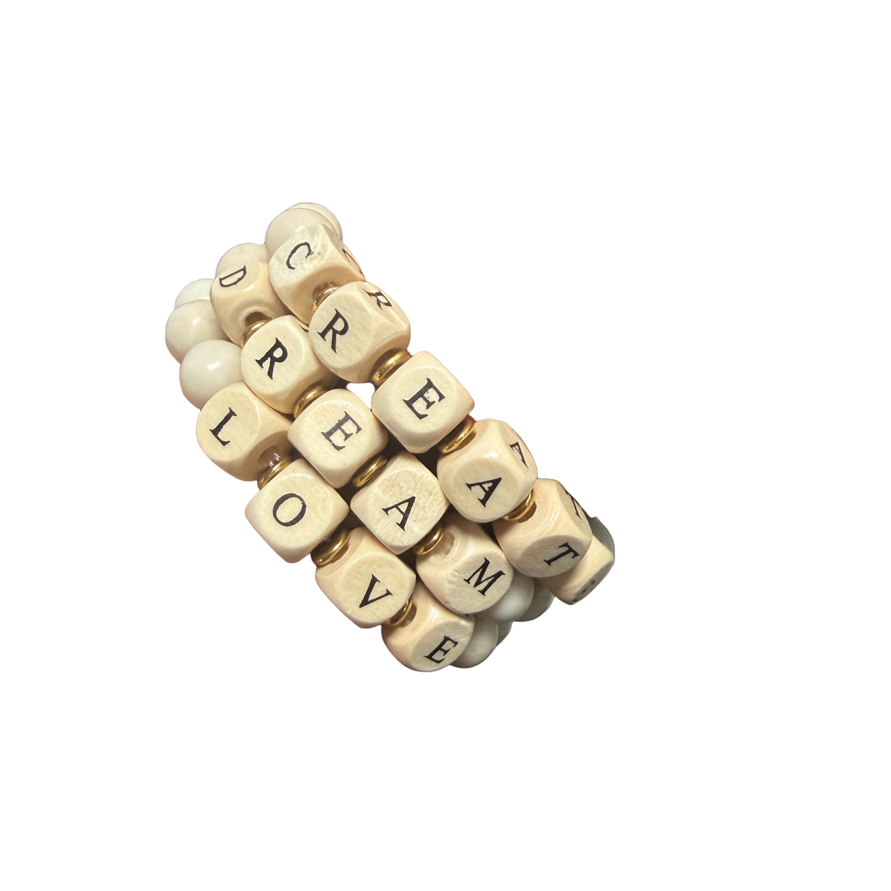 Discover the super cute Message Bracelets, each featuring a great design and a positive vibe. Choose from three fun options—Love, Create, or Dream—to wear your favorite reminder or share with someone who inspires you. Perfect for adding a playful touch to any look!