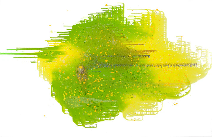 Warp Drive captures the essence of motion and transformation through dynamic abstract composition. Vibrant greens and yellows interweave across the canvas, creating a sense of velocity and boundless energy. Dr. Ginger Lai's original artwork invites contemplation of space, time, and the infinite possibilities that lie beyond our perception. A striking statement piece for collectors who appreciate contemporary art that challenges and inspires.