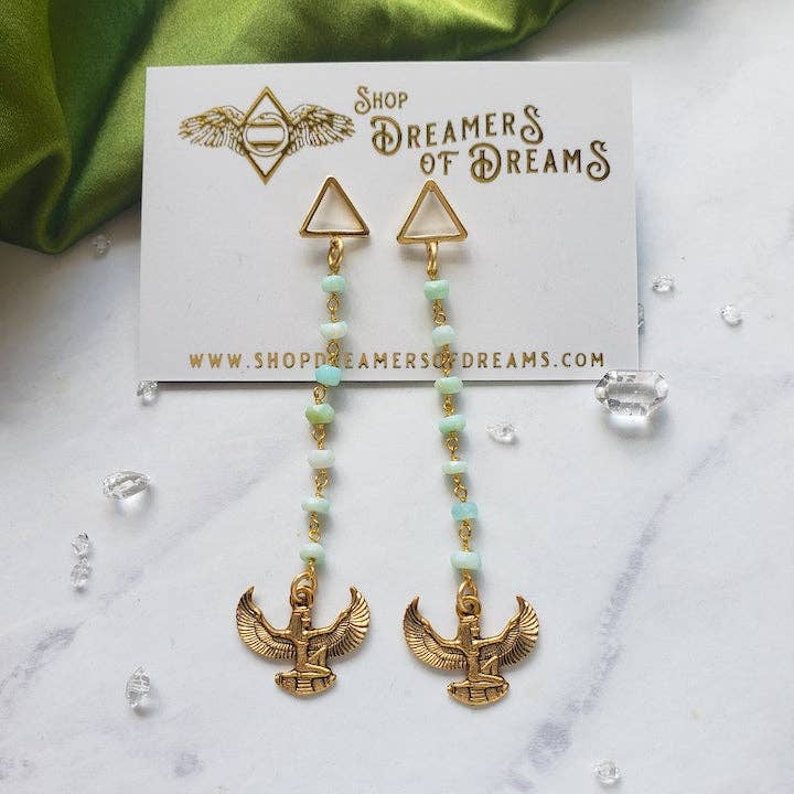 Unleash your bold and daring side with these Long Beaded Isis Charm Dangle Earrings! These earrings feature an eye-catching isis charm and elegant beaded details that will make you stand out from the crowd. Perfect for adding a touch of adventure and charm to any outfit!