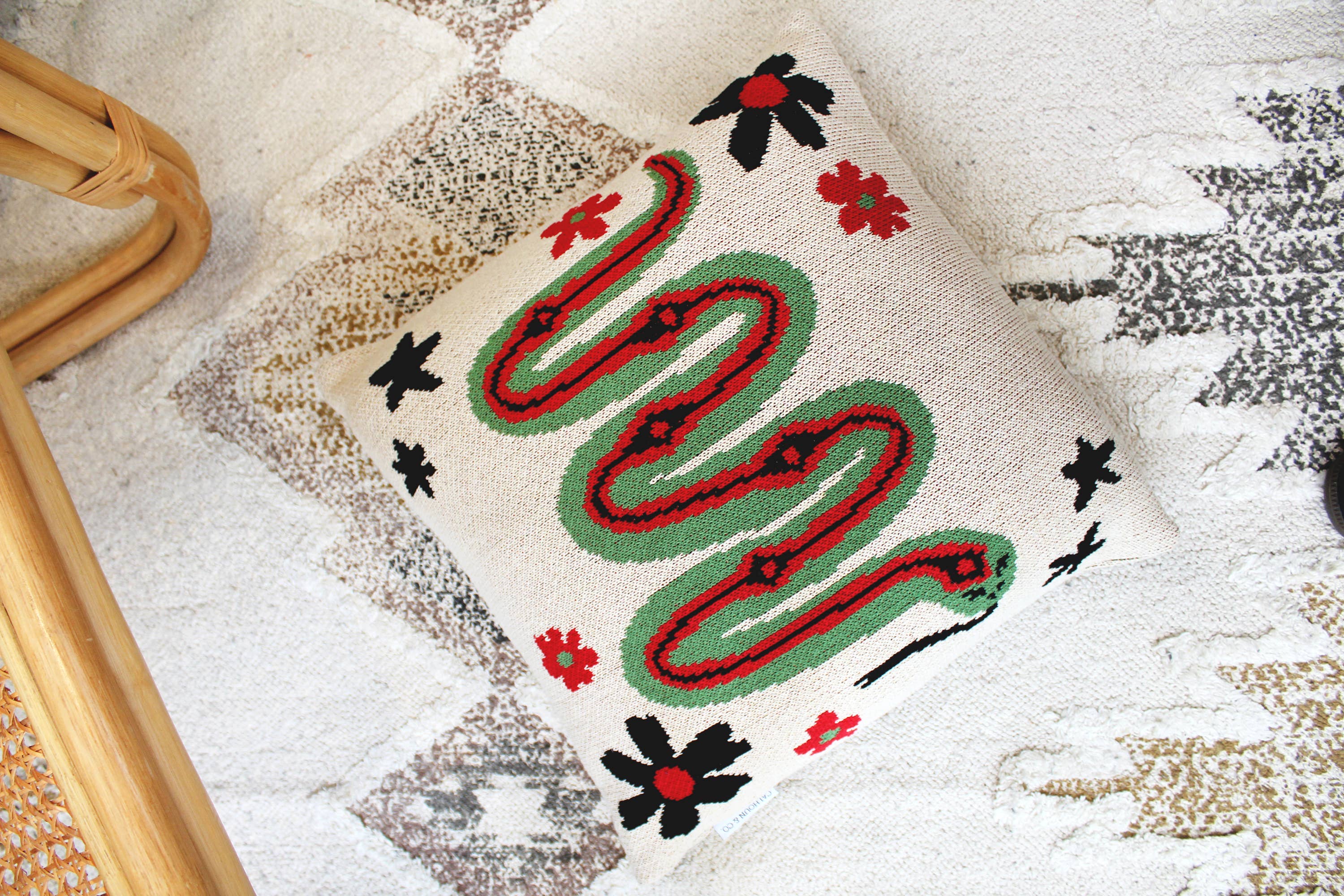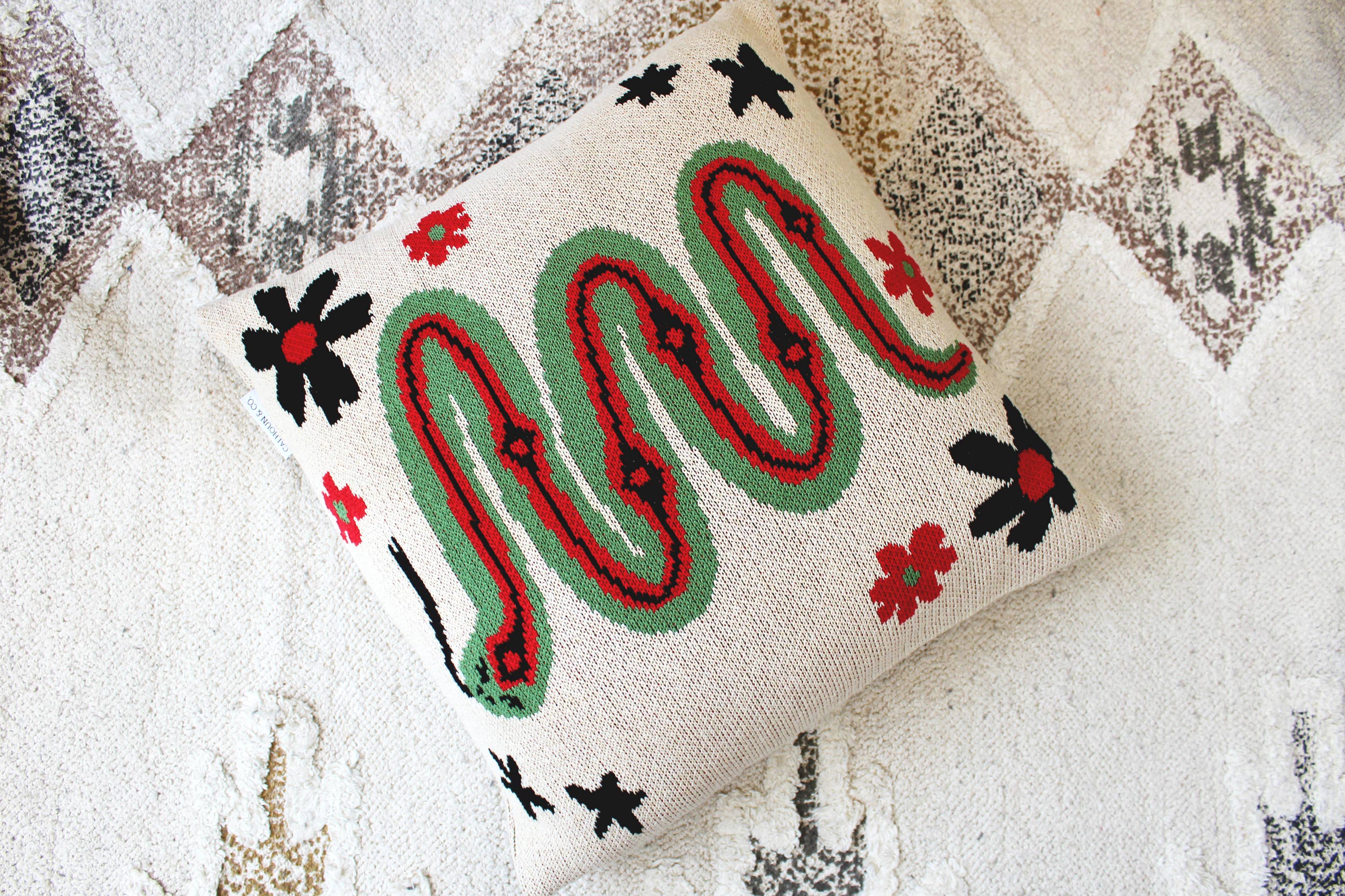 Add a touch of playful charm to your space with the Snake Knit Throw Pillow. Cozy and soft, it’s perfect for snuggling up or brightening up your couch. You’ll love its unique knit design that’s both adorable and inviting—making comfort stylish and fun!